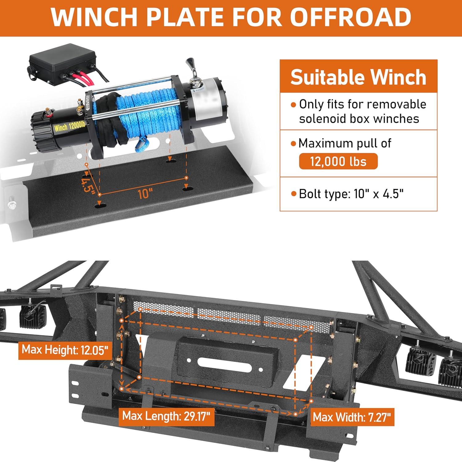 【Winch-Ready & Recovery-Ready】- Equipped with a winch plate rated up to 12,000 lbs and heavy-duty D-ring shackle mounts (D-rings not included), making it a reliable recovery-ready upgrade for off-road adventures