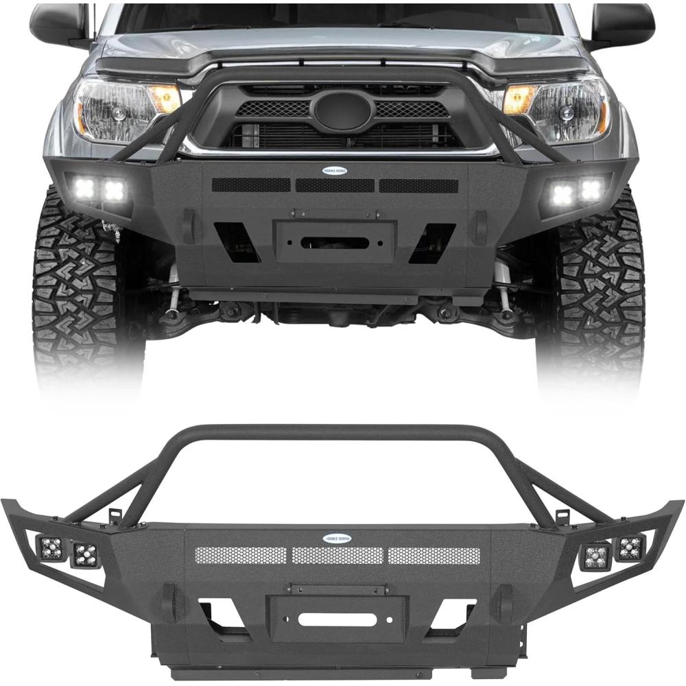 imageHooke Road 1215 Tacoma Full Width Front Bumper wTube Grille Guard for 20122015 Toyota Tacoma 2nd Gen Sturdy Steel Offroad Bumper with Winch Plate LED Lights Dring Mounts