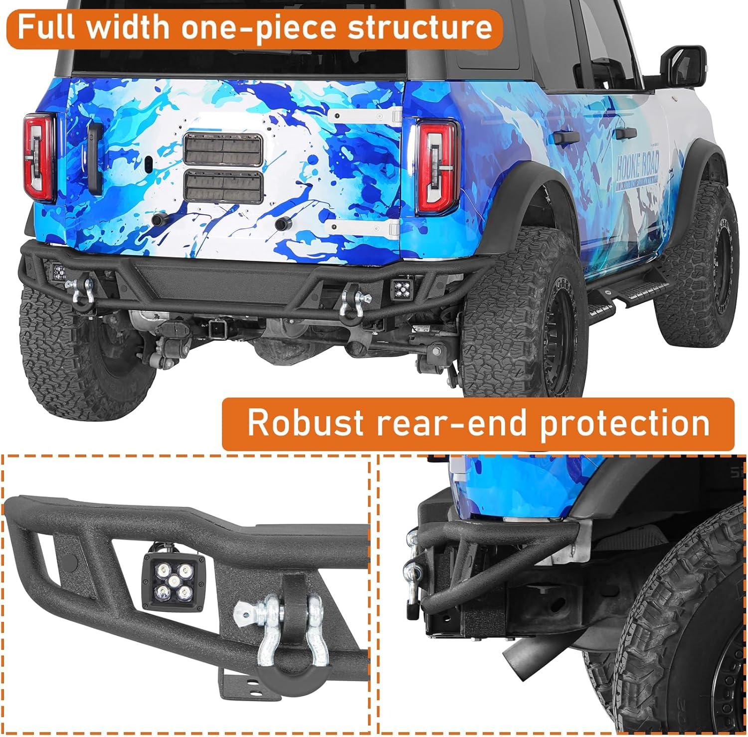【Application】- Tubular rear bumper is specifically engineered for a precise fit in Ford Bronco 2021 2022 2023 2024 2025 2026 models (Not for Raptor). Compatible with factory backup sensors (Professional installation is highly recommended)