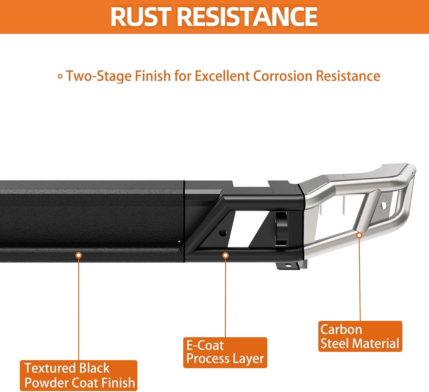 【Corrosion-Resistant Finish】- Features a textured black powder coat with a premium E-coating inside, offering exceptional corrosion protection for long-lasting durability, even in harsh weather or muddy trails