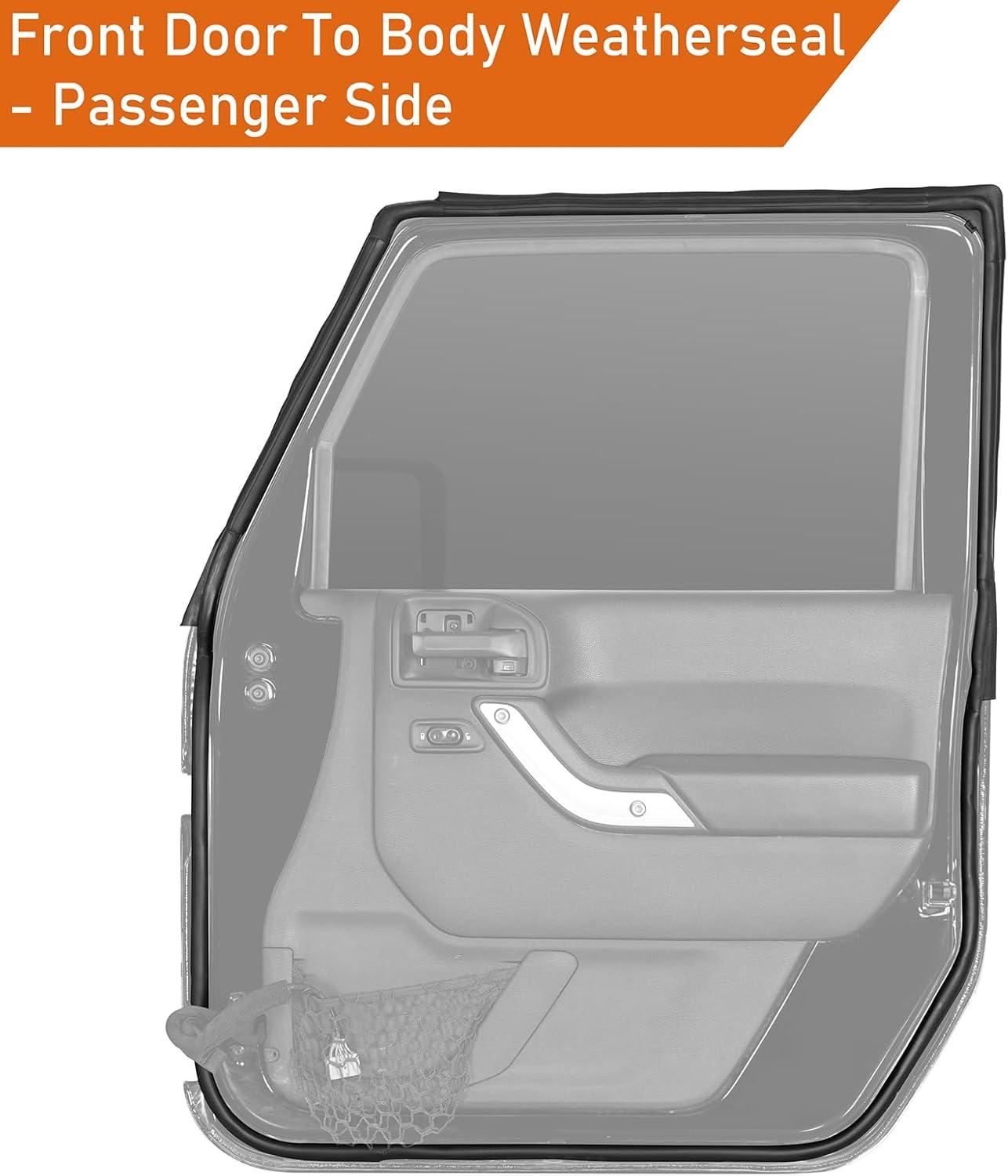 Hooke Road Front Full Door Weatherstrip Seal Right Passenger Side for 2007-2018 Jeep Wrangler JK, Rubber Sealing Strip OEM Replacement 55395274AW