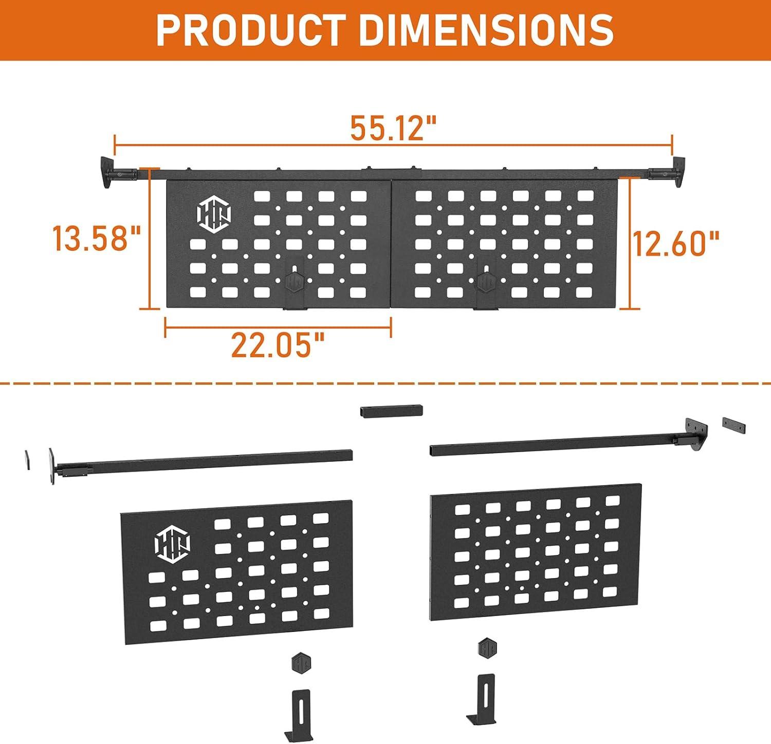 【Convenient For Fixing & Moving Items】- 2 adjustable support feet provide greater stability, preventing cargo from shifting during rough terrain drives. Quick release design allows you adjusting truck bed storage space for multiple needs. Rotates the panel that lying flat above cargo to create a new top storage platform. Note: Please avoid laying the bed divider flat without items support beneath it