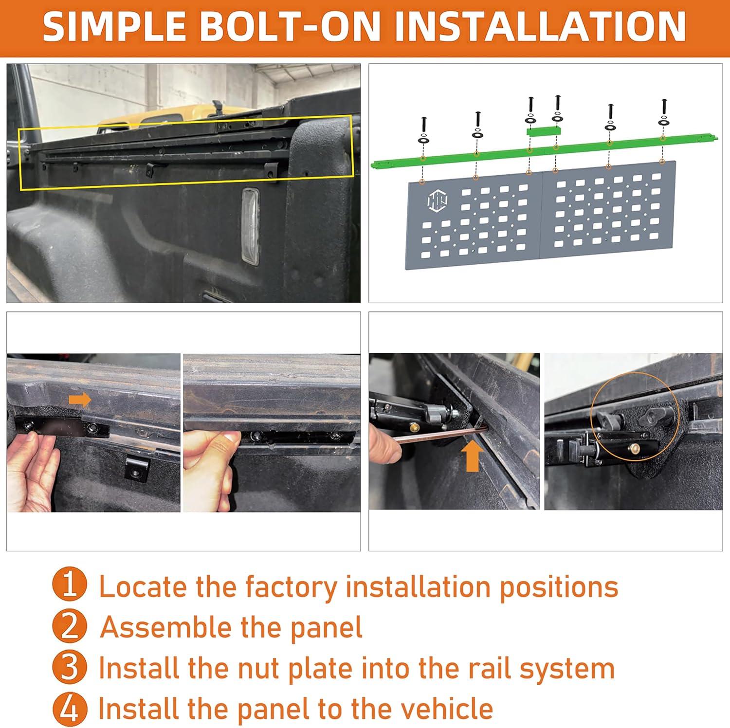 Hooke Road Gladiator JT Truck Bed Divider MOLLE Panel Rack for 2020-2026 Jeep Gladiator JT, Solid Steel Tool Storage Organizer Cargo Manager