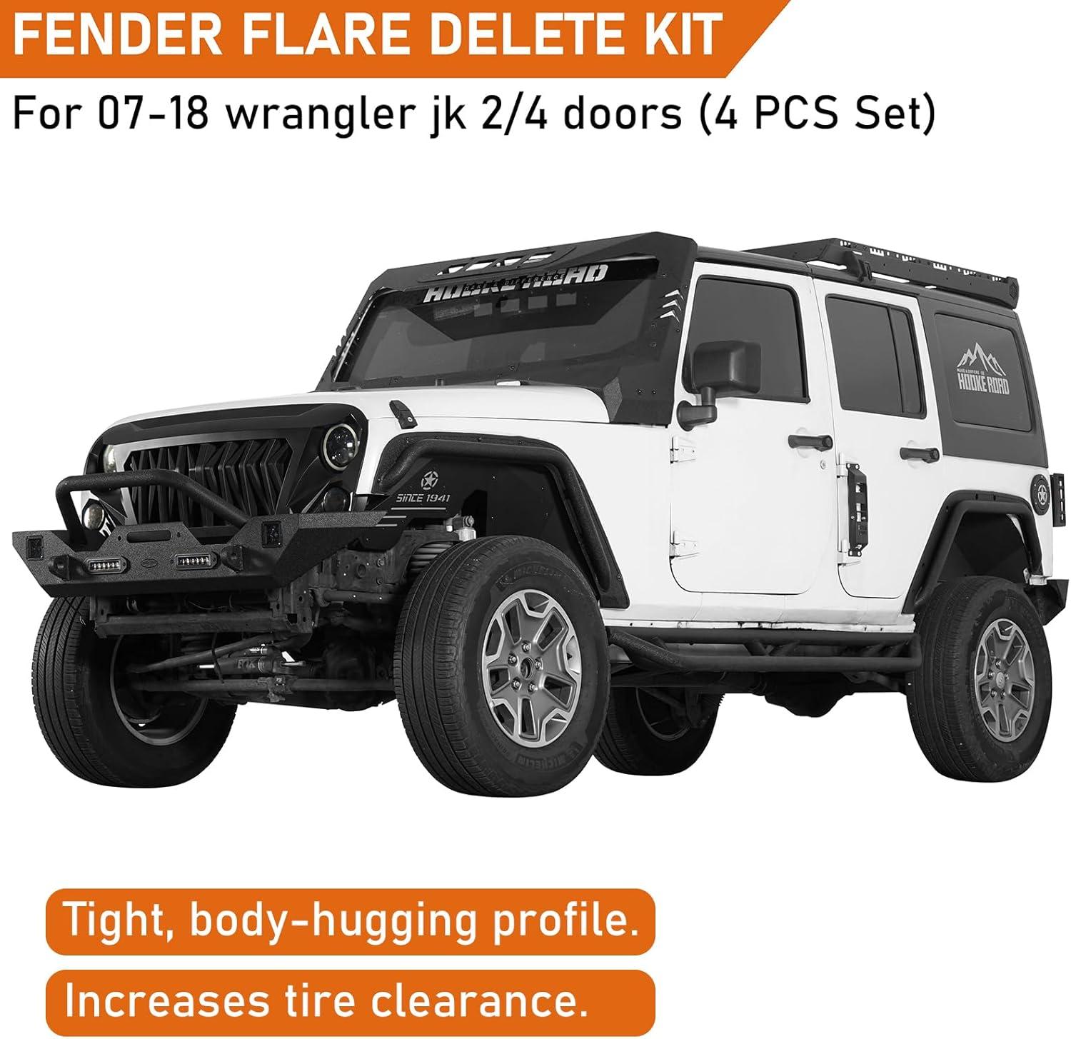 【Application】- Hooke Road compact tube fender flares fits for 2007-2018 Jeep Wrangler JK JKU 2/4 Doors Unlimited | Sports | Sahara | Freedom | Rubicon | X models