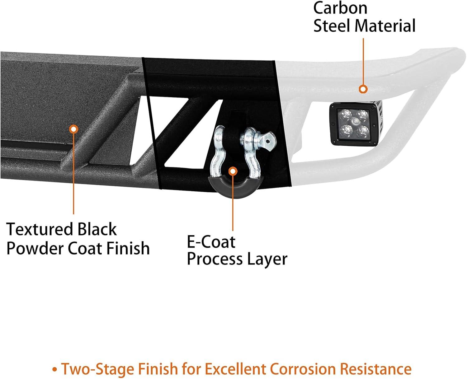 【Warranty】- Features a textured black powder coat with a premium E-coating inside, offering exceptional corrosion protection for long-lasting durability in harsh conditions