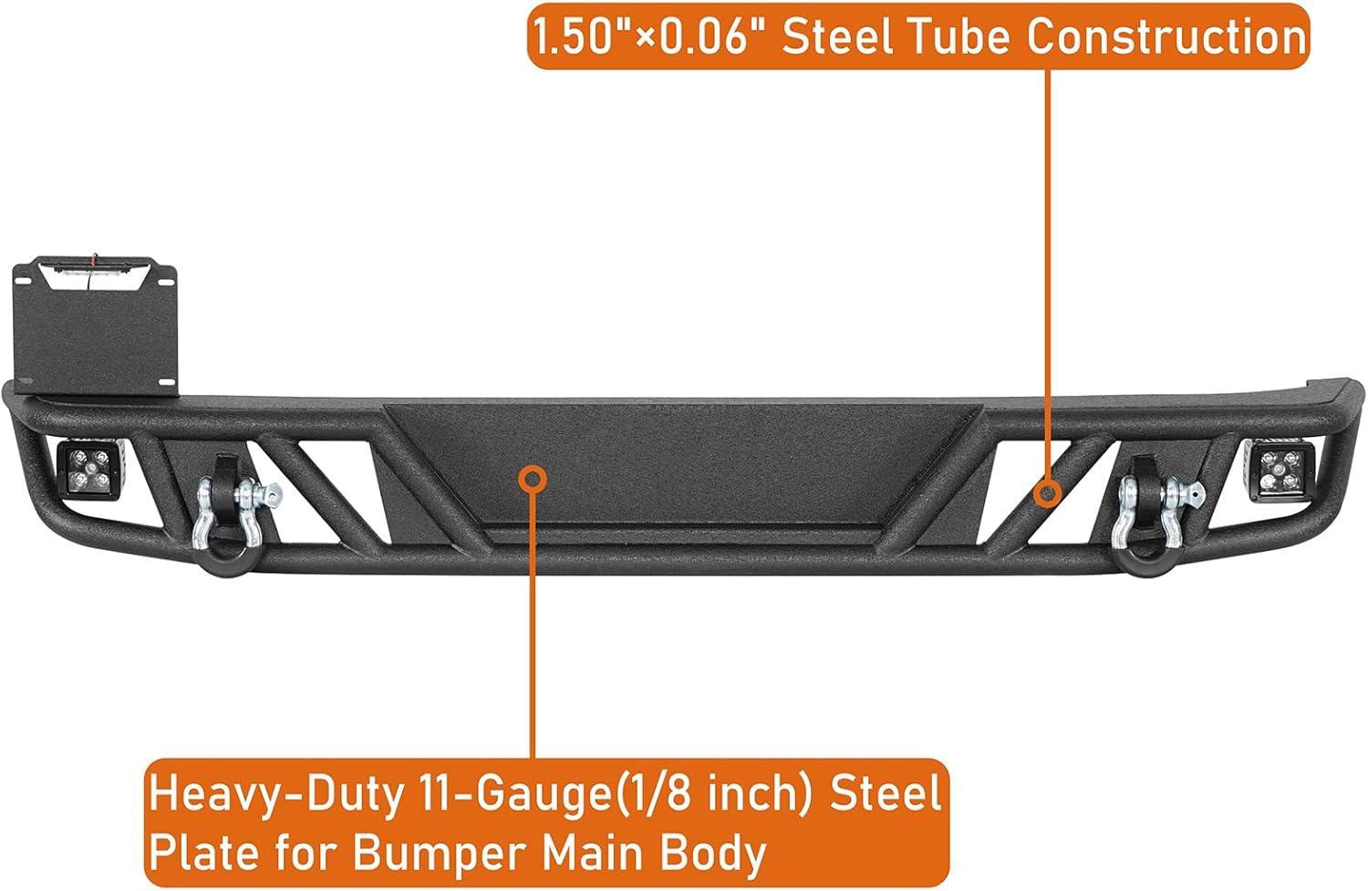 【Heavy-Duty Construction】- Made from 1.50″×0.06″ steel tube and 11-gauge (1/8 in) steel plate. The rear bumper weight is about 65 lbs