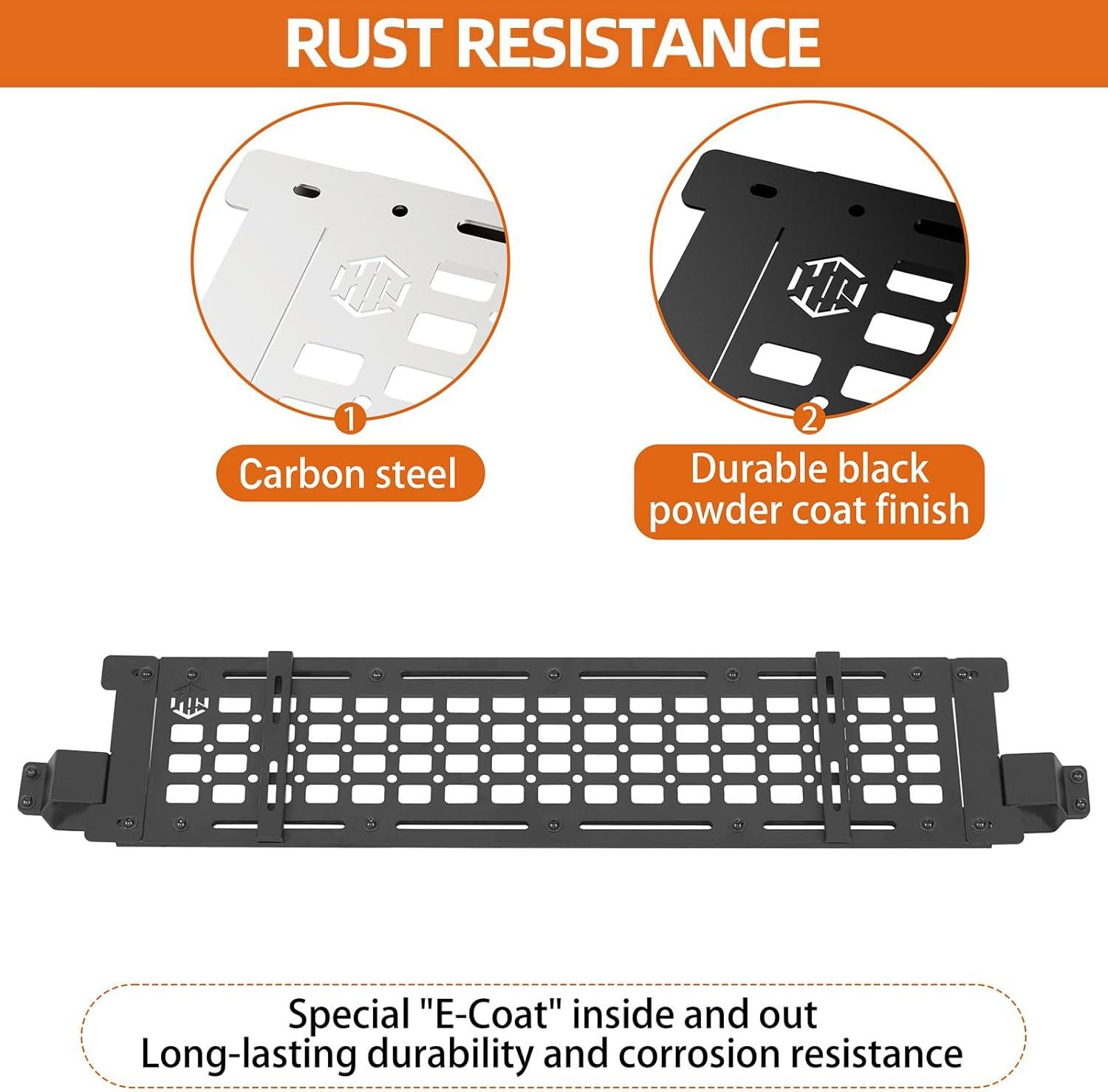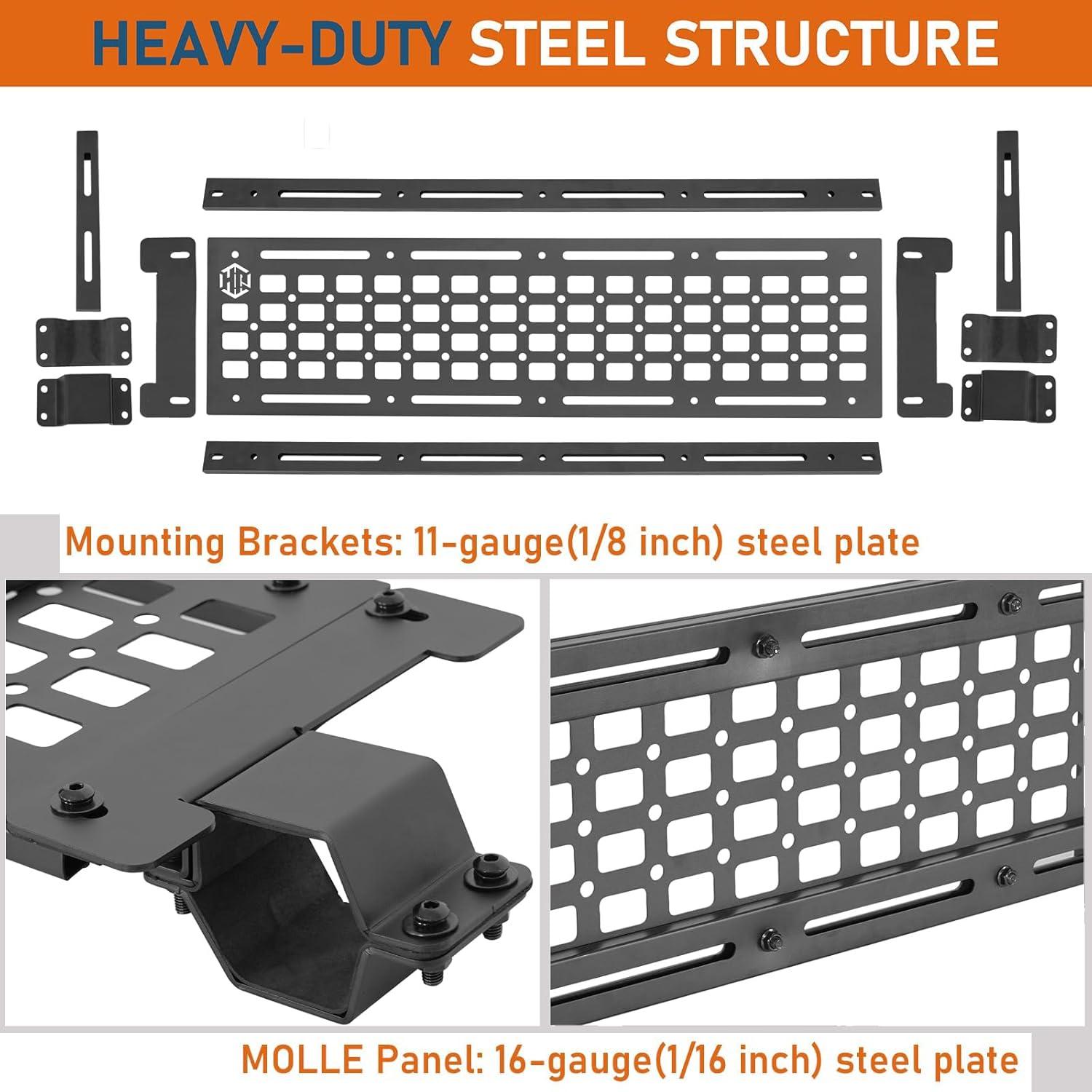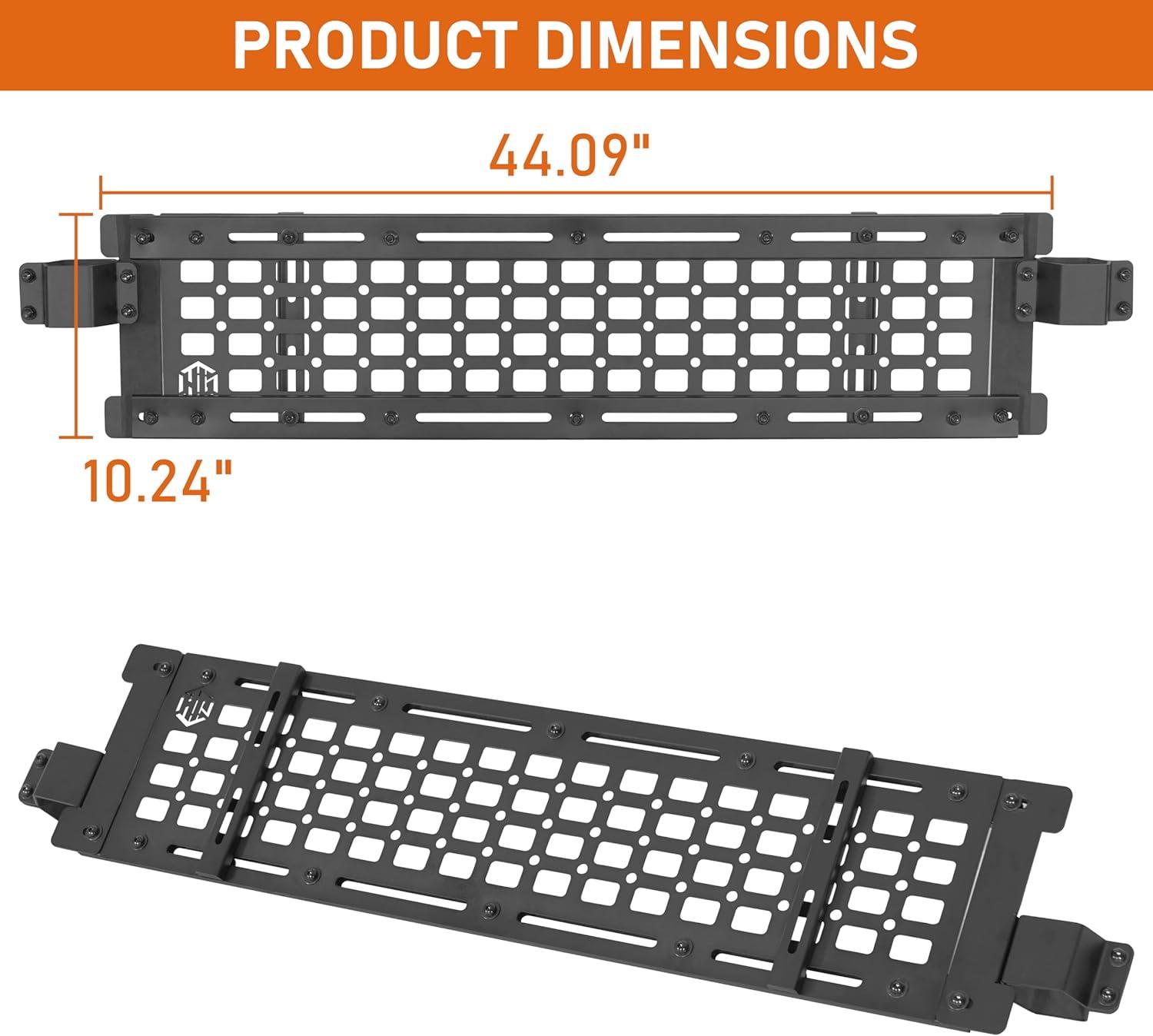 【Application】- Hooke Road roll bar storage molle panel utility rack for 2018-2026 Jeep Wrangler JL Unlimited 4-Door Hardtop. Note: After installation, the rear view mirror may be obstructed from inside the vehicle. Please carefully consider this before making your purchase