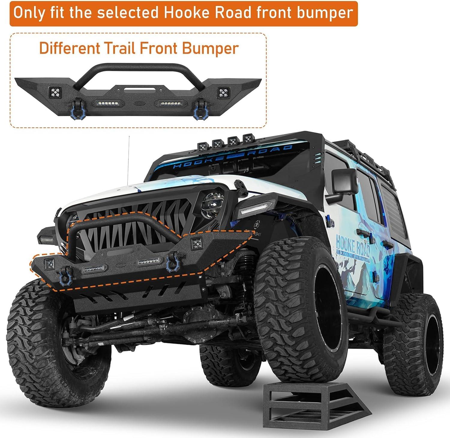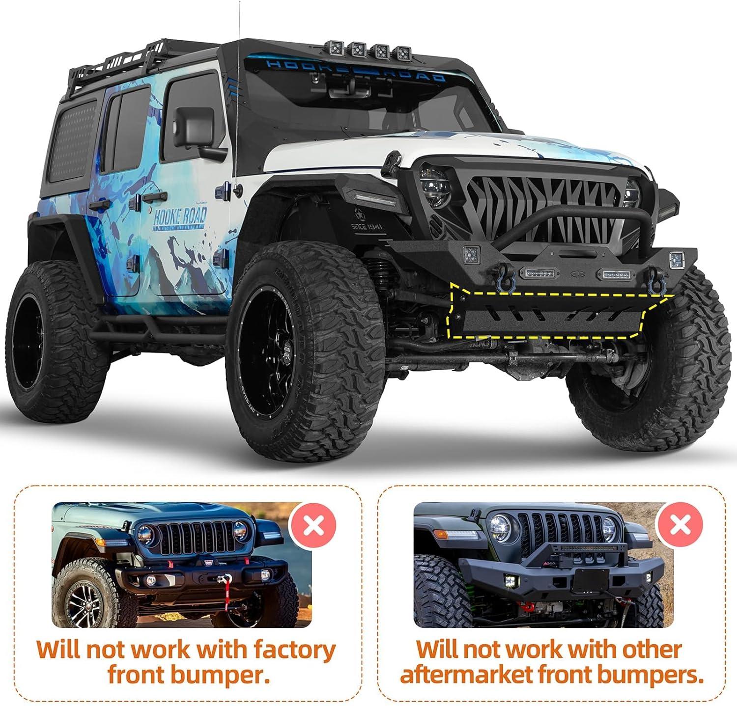 Hooke Road Steel Skid Plate Front Bumper Cover for 2018-2026 Jeep Wrangler JL & Gladiator JT, Offroad Lower Body Armor Guard, Only Compatible with Hooke Road Different Trail Front Bumper