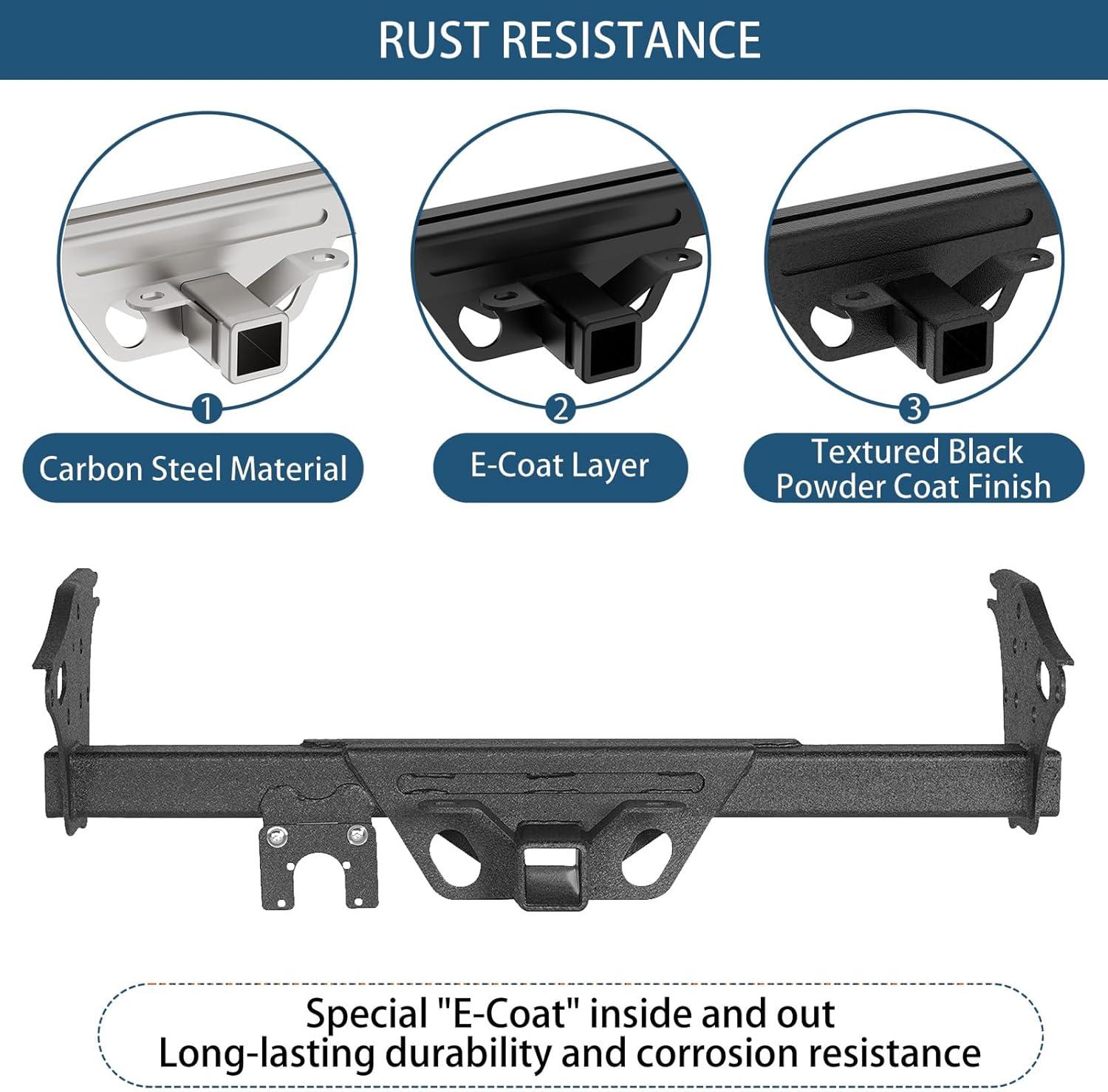 【Corrosion-Resistant Finish】Textured black powder coat with premium internal E-coating provides dual-layer protection against rust, wear, and road salt for long-lasting performance