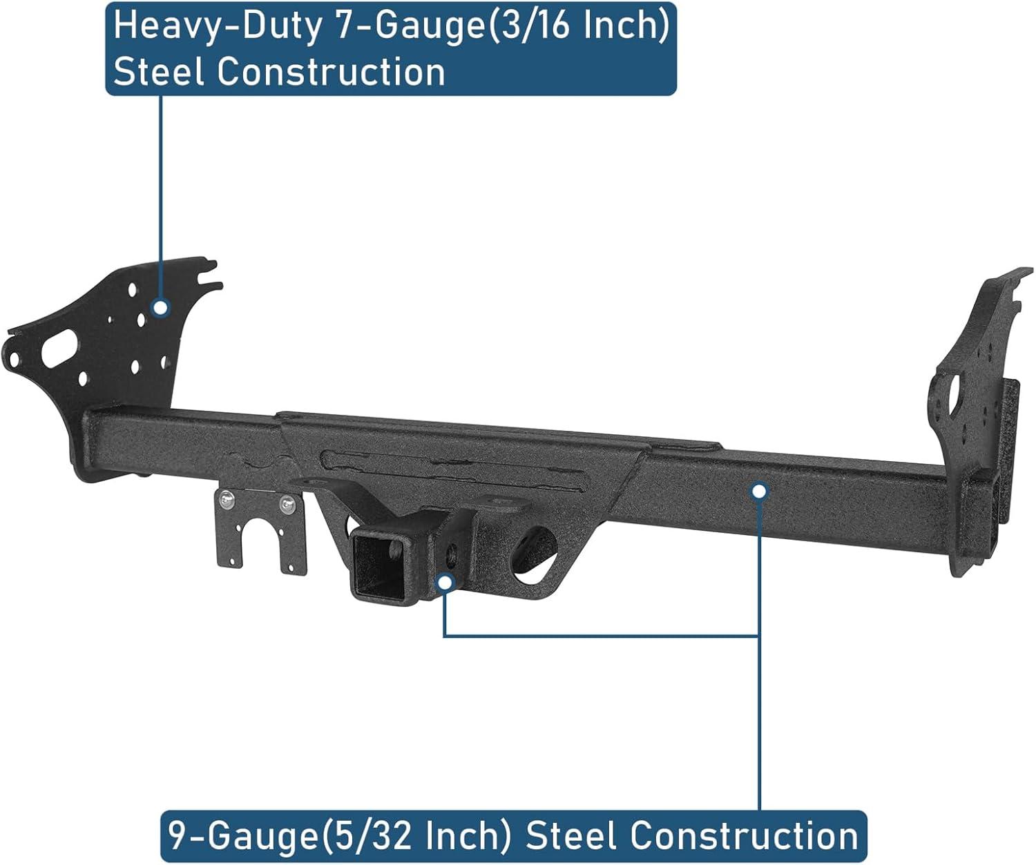 【Heavy-Duty Construction】Crafted from 7-gauge (3/16 inch) high-strength steel for maximum durability and towing safety; hitch weighs approx. 39 lbs for a solid, dependable connection