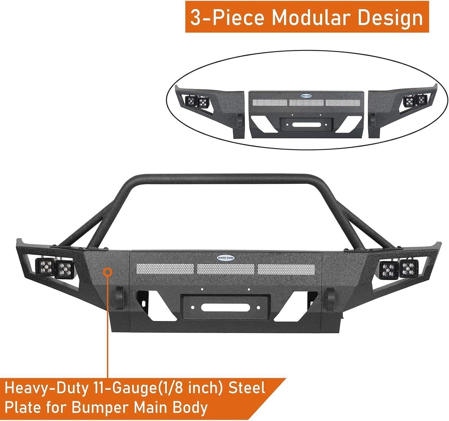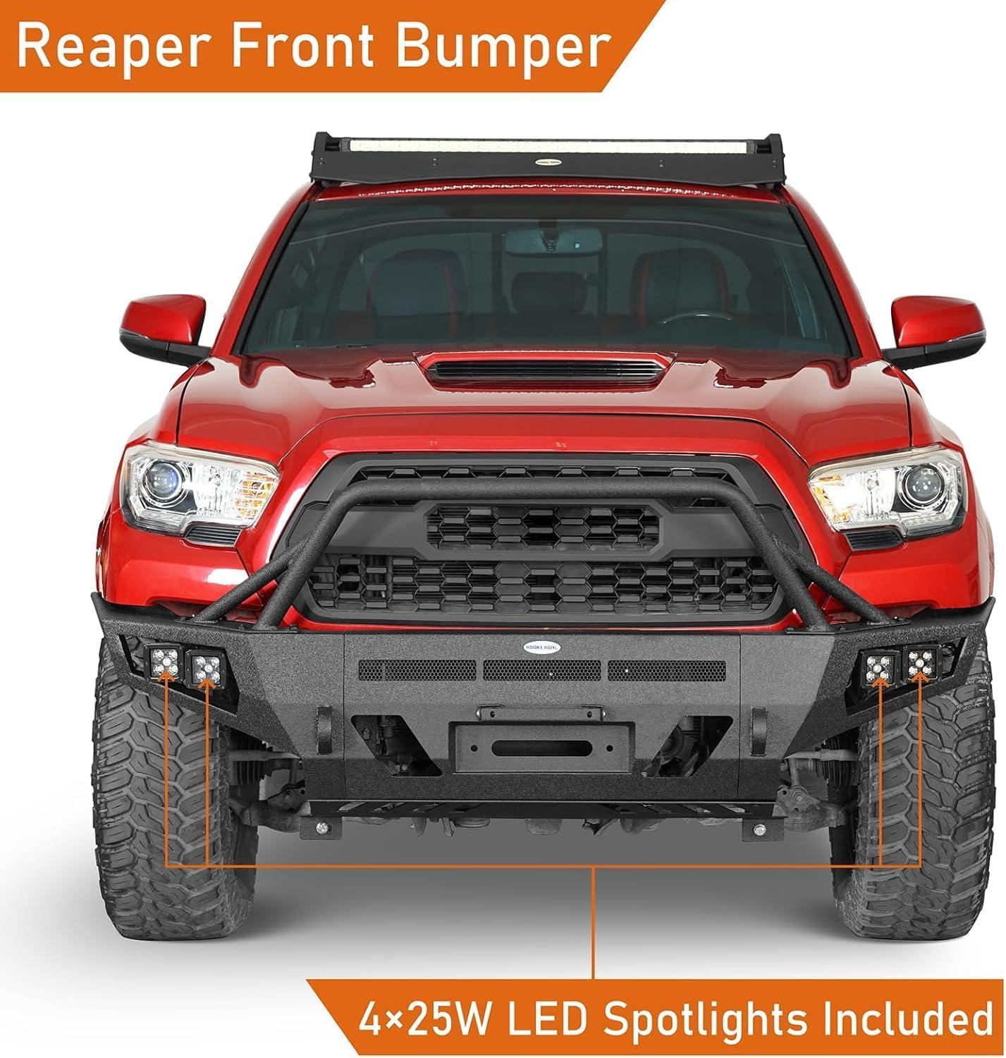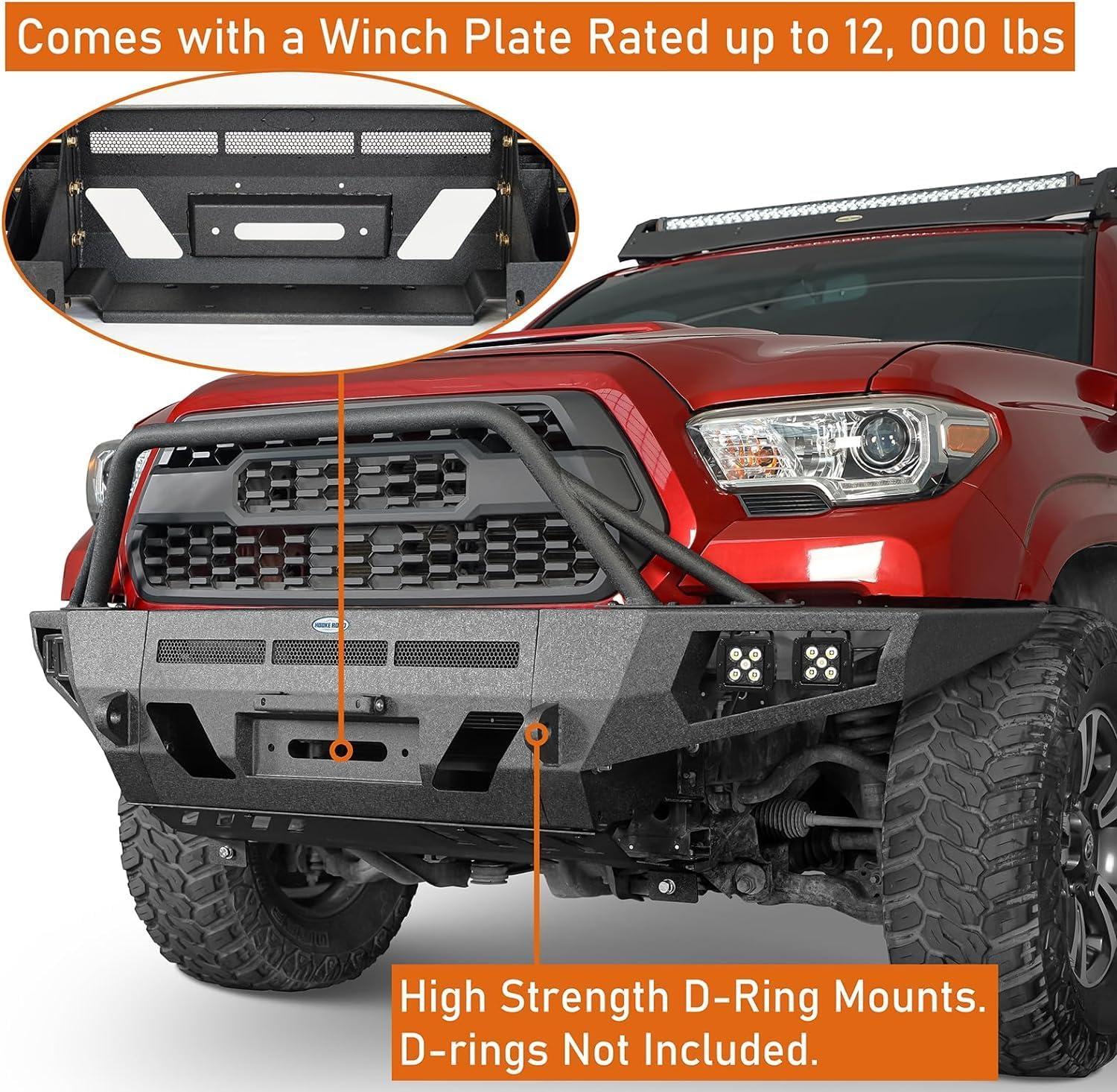 Hooke Road Tacoma Front Bumper & Rear Bumper Kit w/D-Rings Winch Plate & LED Lights for 2016-2023 Toyota Tacoma 3rd Gen