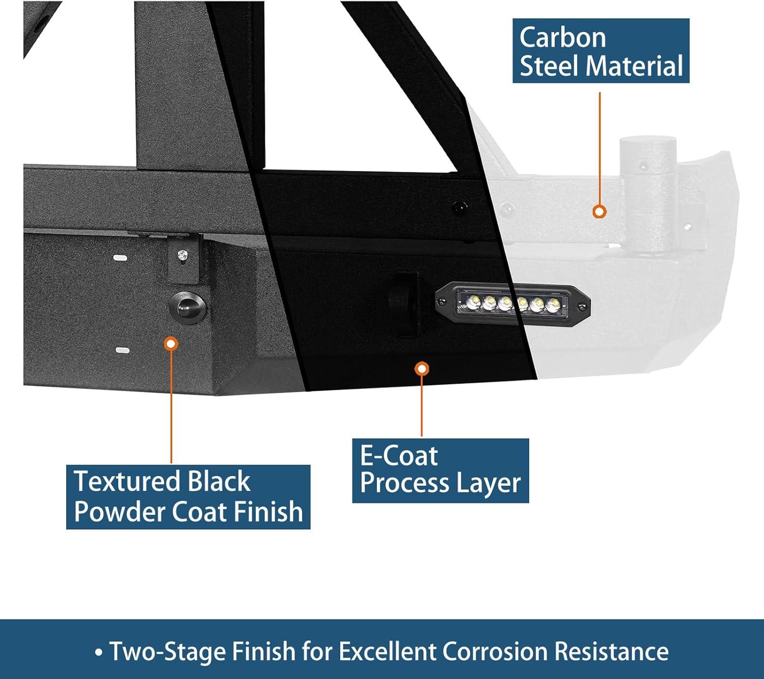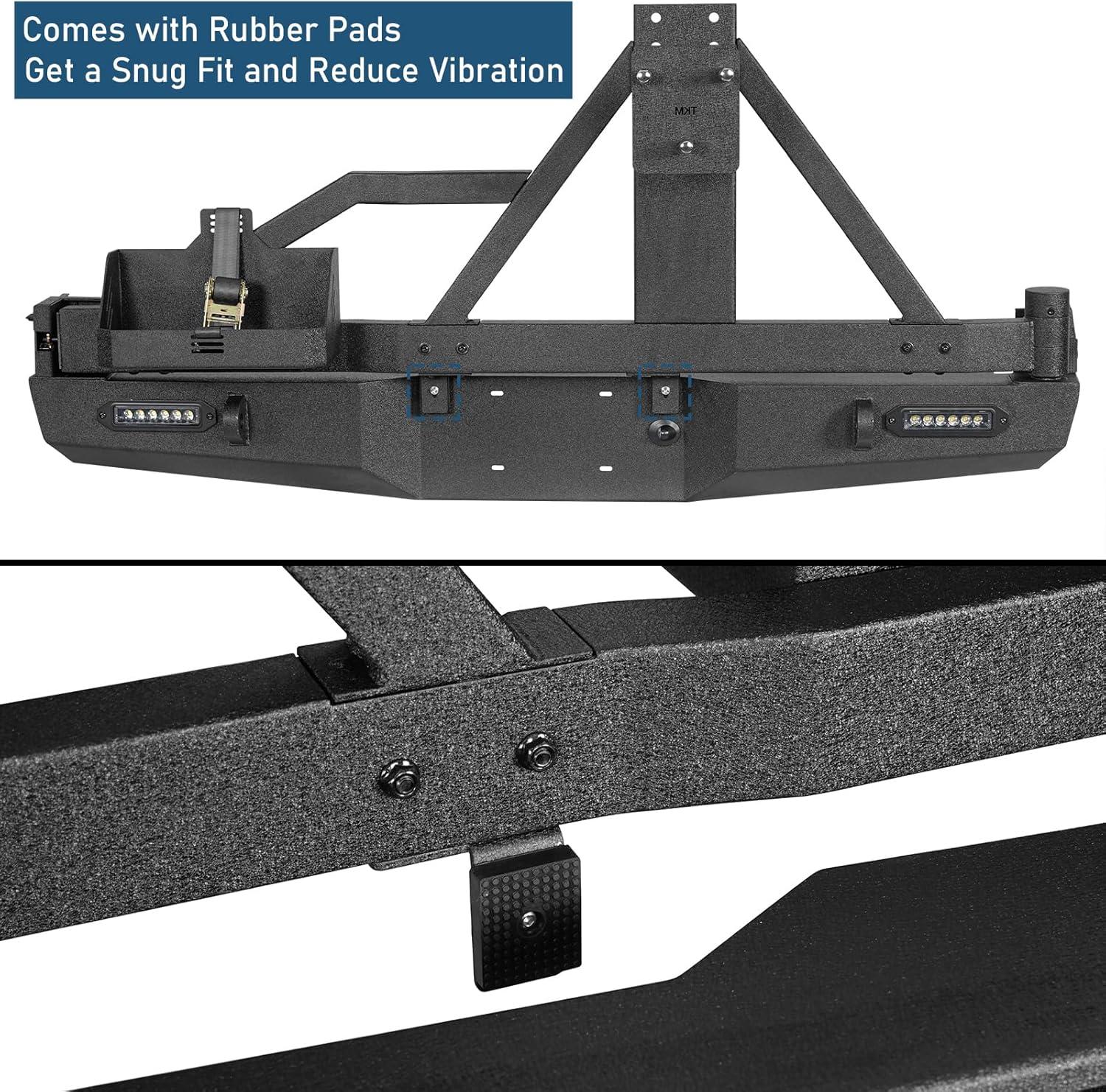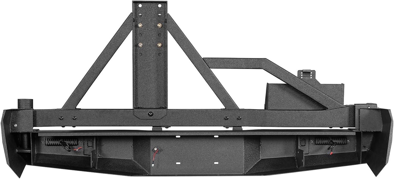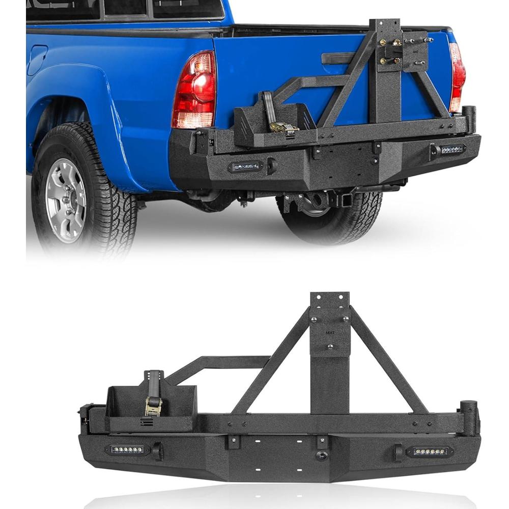 【Application】Hooke Road Explorer rear bumper with swing-out tire carrier fits 2005-2015 Toyota Tacoma 2nd pickup trucks. Compatible with factory hitch receiver. Not compatible with factory backup sensors