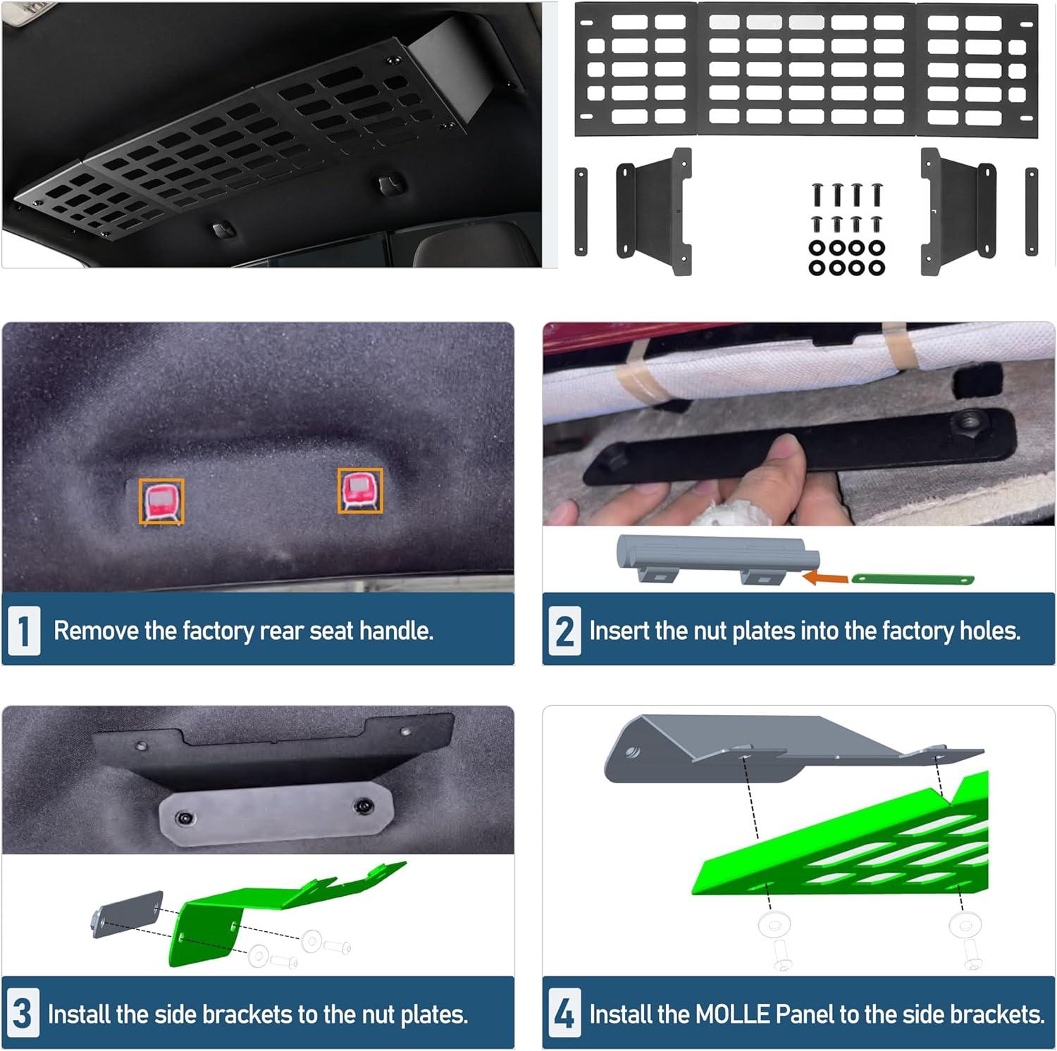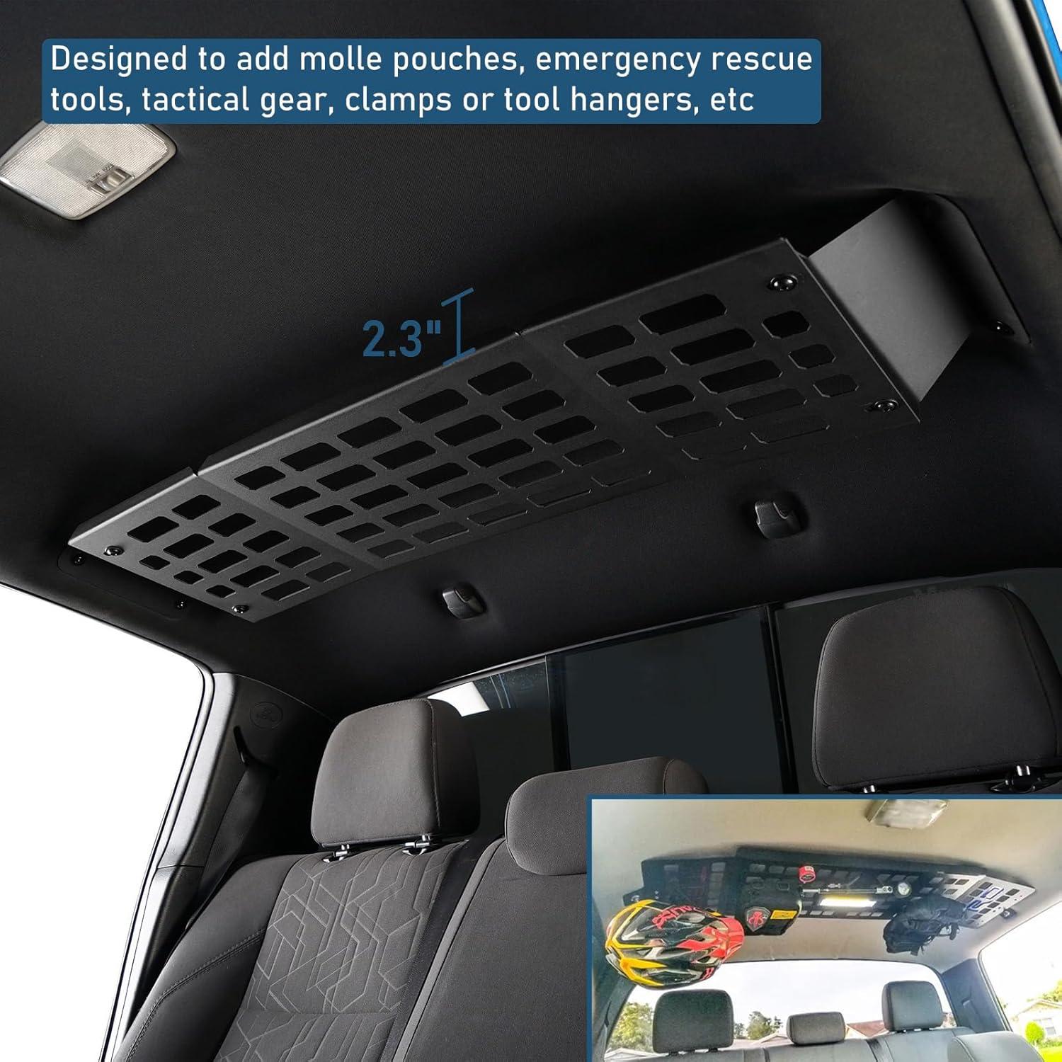 【Fitment】- Hooke Road rear overhead MOLLE panel for 2016-2023 Toyota Tacoma 3rd Gen Double Cab models. Attention this panel will affect the headroom of the rear seats
