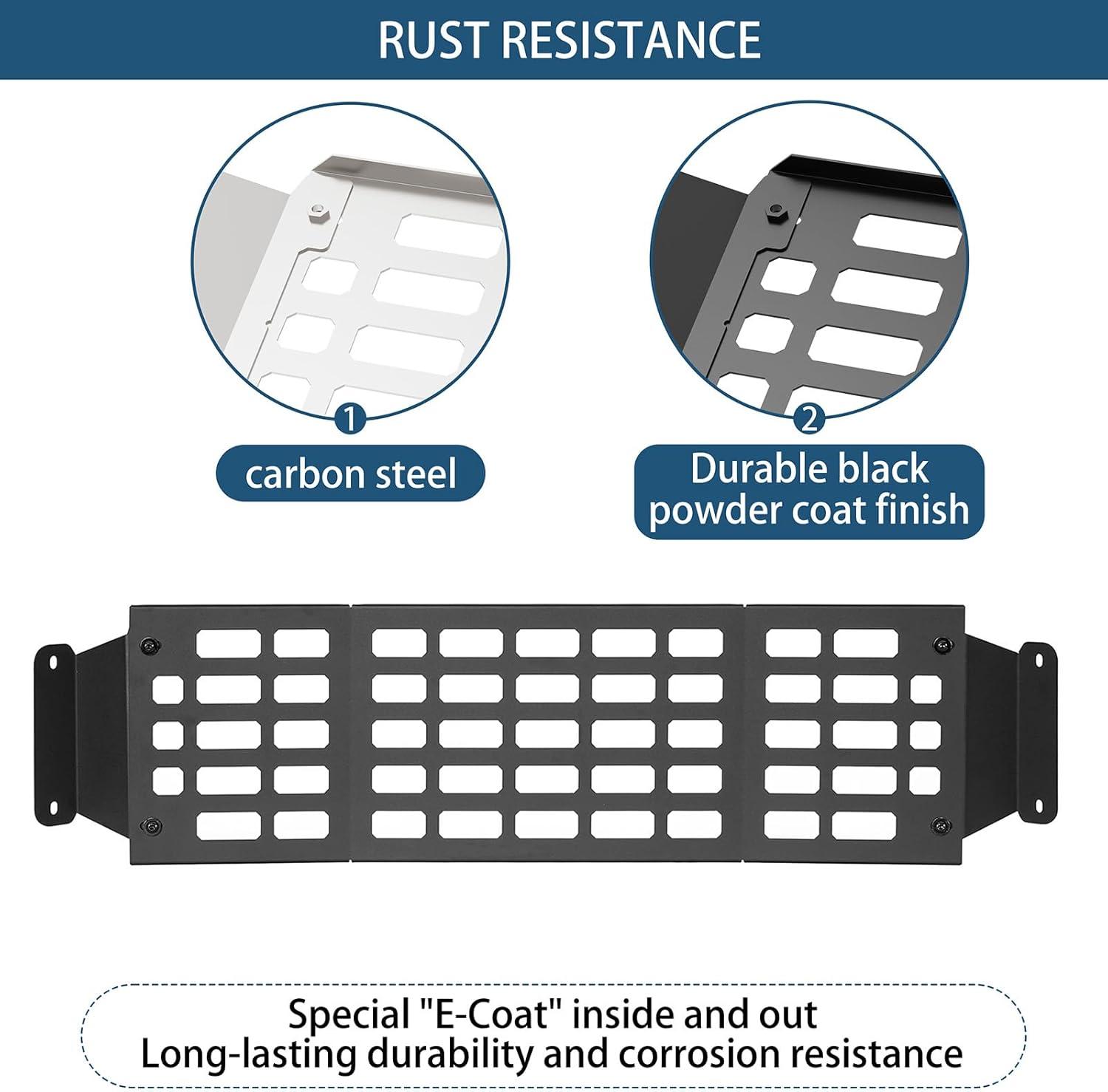 【Heavy-Duty Construction】- CNC cut and formed from 14-gauge (5/64 inch) steel plate for structural rigidity and long-term durability. Features a durable black powder coat finish, protecting against scratches and corrosion in various driving environments