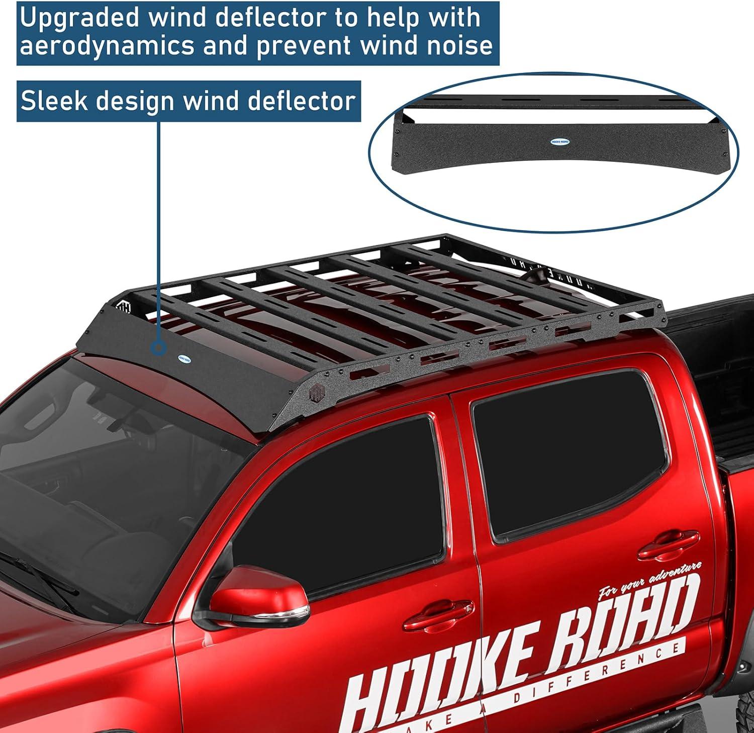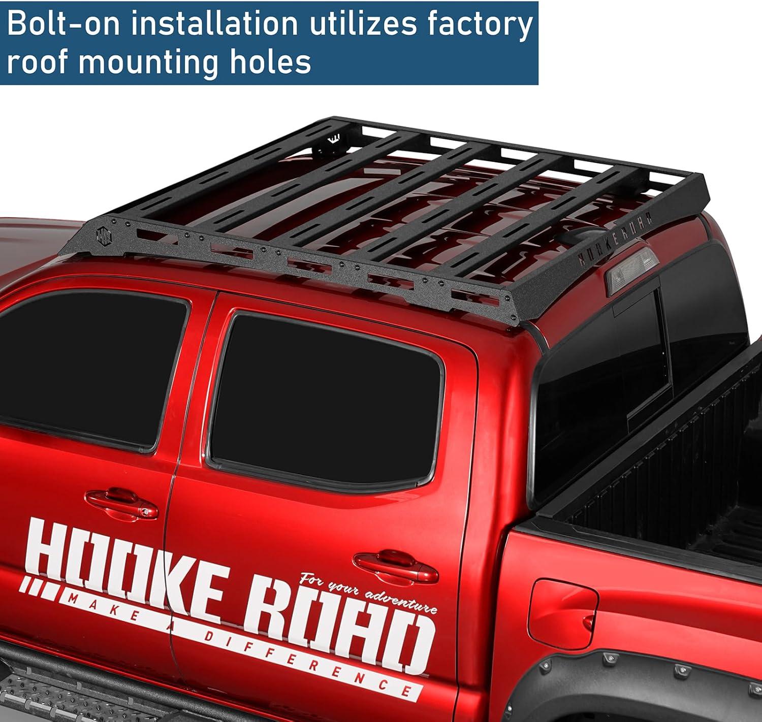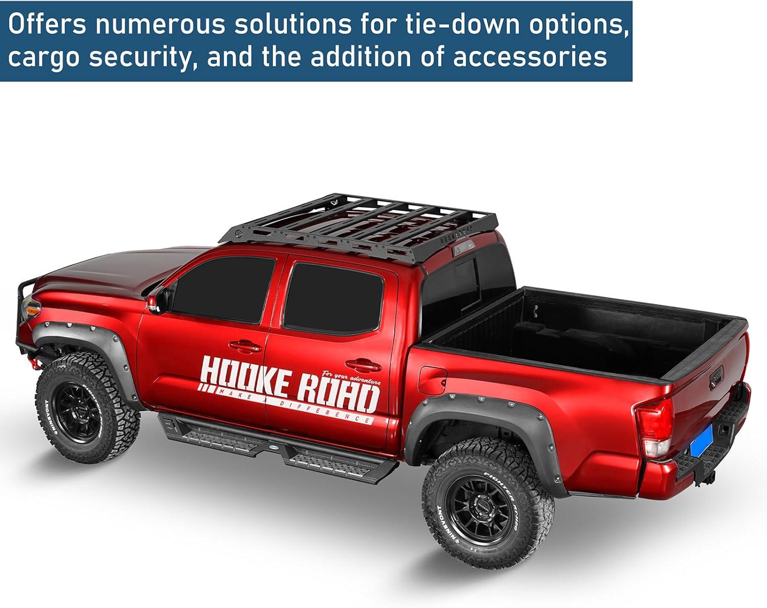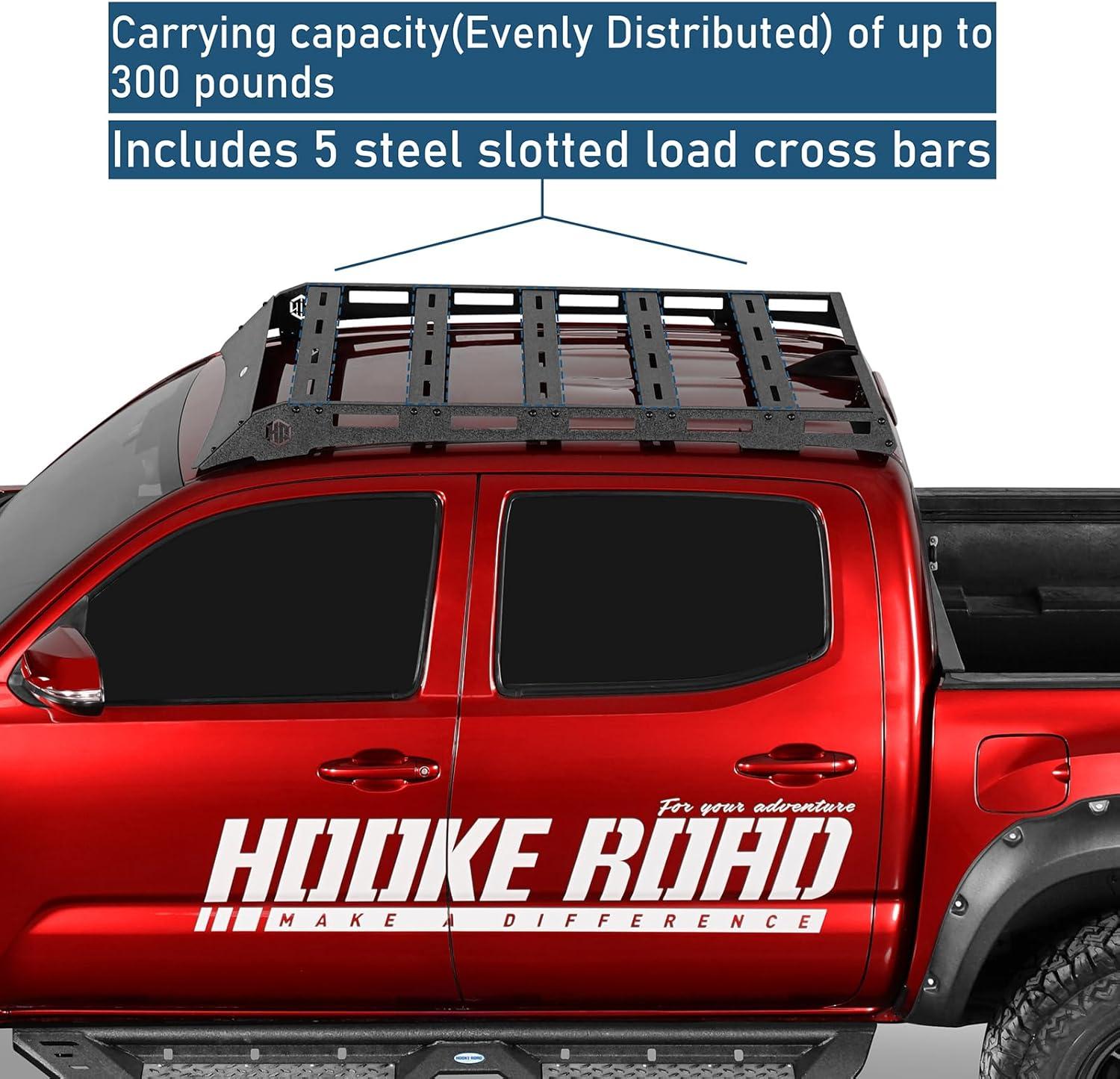 Hooke Road Tacoma Roof Rack Steel Cross Bars for 2005-2023 Toyota Tacoma 2nd 3rd Gen Truck (Double Cab Only), Top Cargo Basket Luggage Carrier Storage