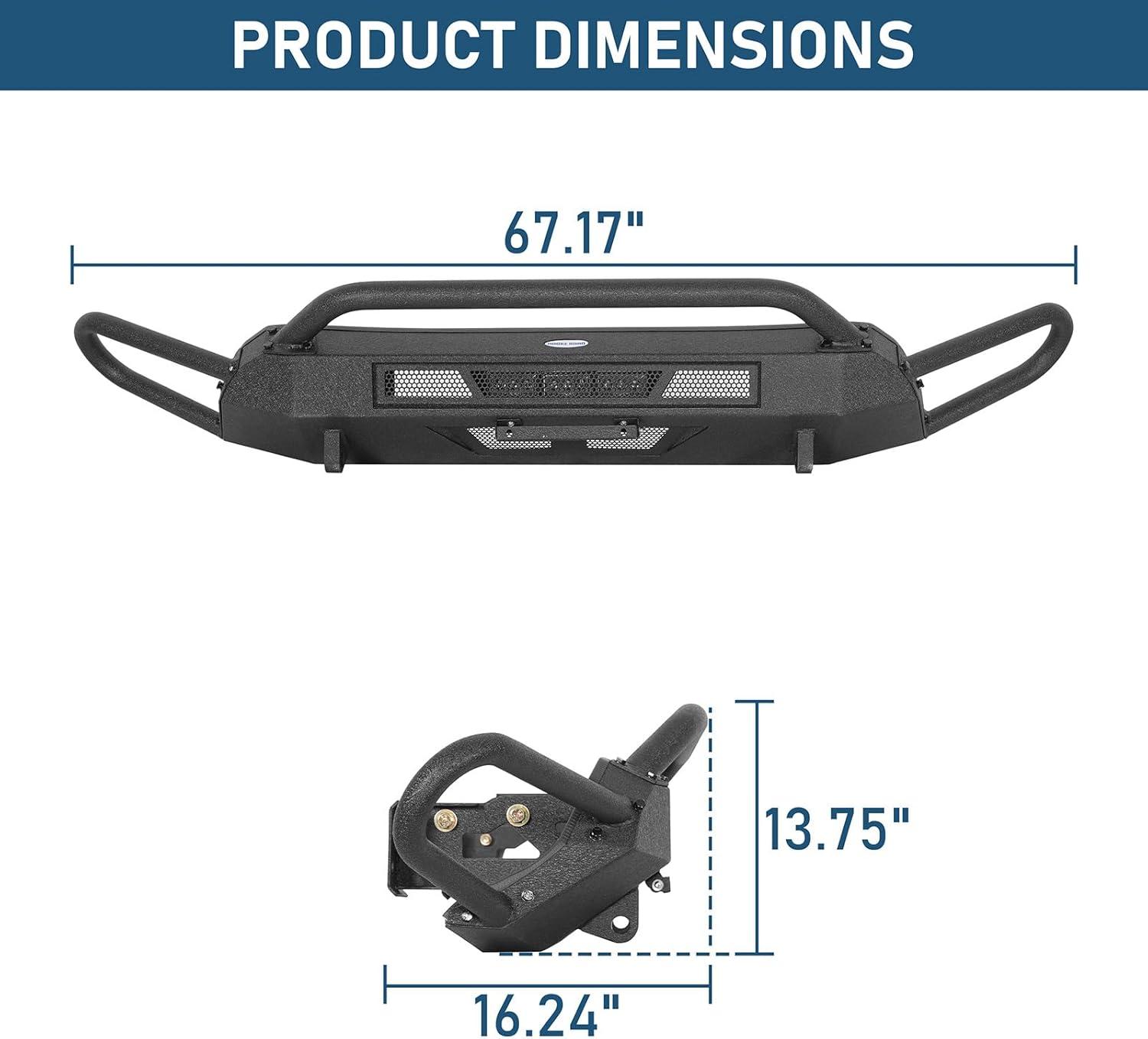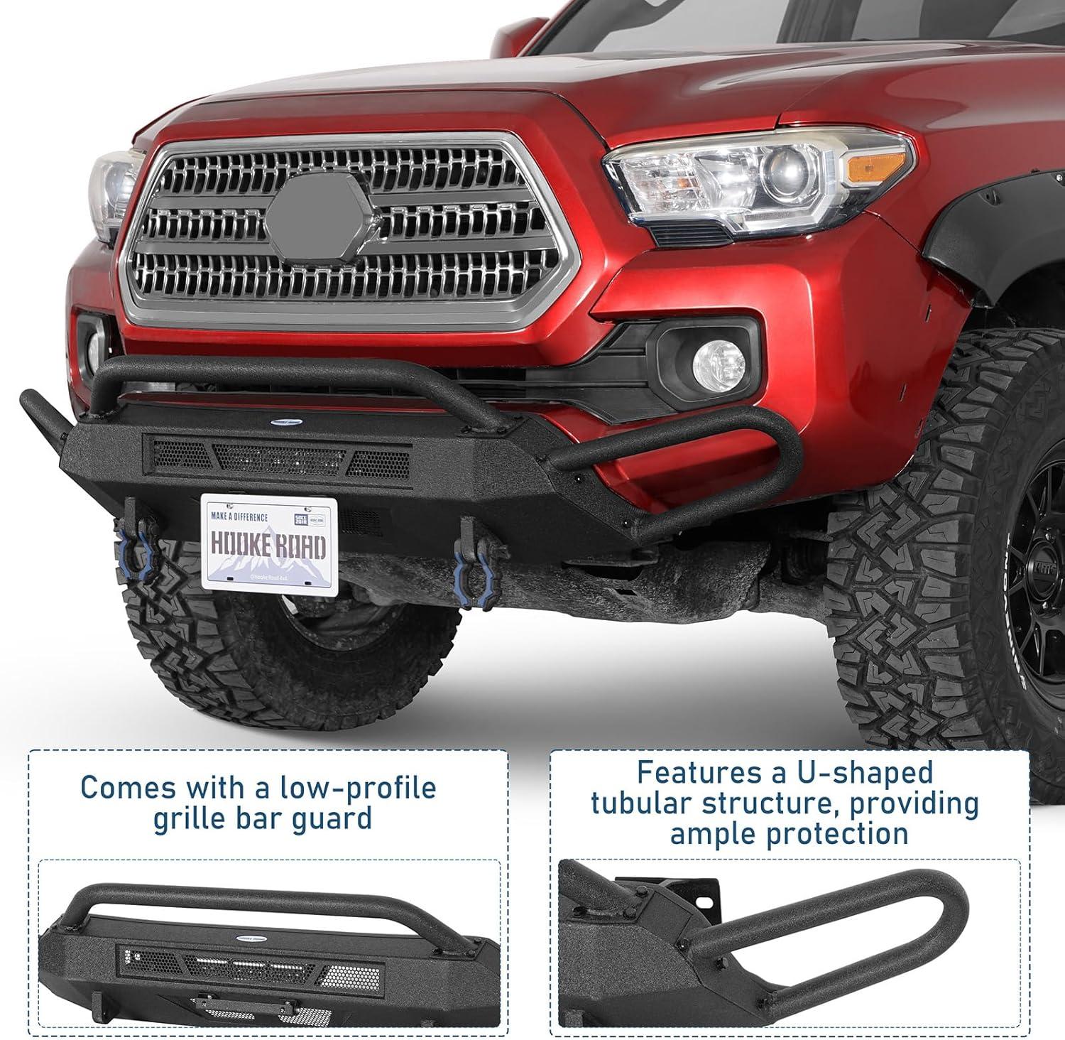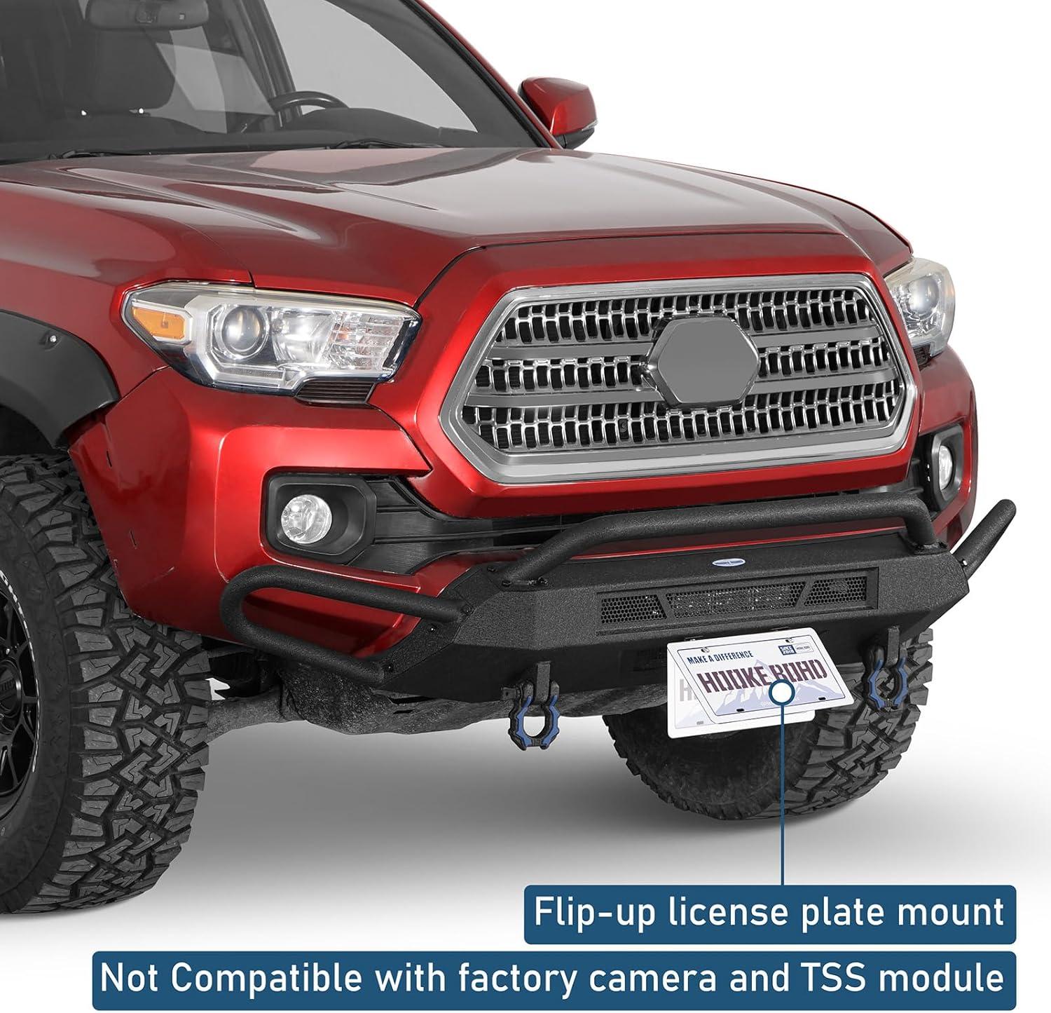【Application】- Hooke Road tacoma stubby front bumper compatible with 2016–2023 Toyota Tacoma 3rd Gen Regular Cab, Access Cab, Double Cab pickup trucks. Maintains TSS & front camera function—simply remove the top grille guard if minor obstruction occurs