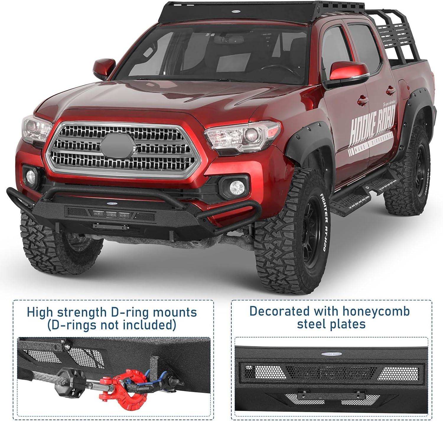 Hooke Road Tacoma Front and Rear Bumper Set w/Winch Plate & LED Lights for 2016 2017 2018 2019 2020 2021 2022 2023 Toyota Tacoma 3rd Gen, Black Steel Step Bumper